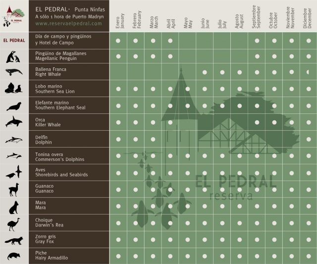 Les paso también el calendario con la fauna que encuentran en cada época en la Reserva El Pedral