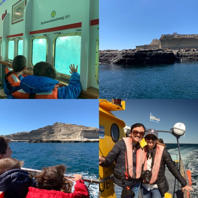 Confieso que cuando la vi en el mapa, no tomé real dimensión de su tamaño ni de las distancias entre los lugares más relevantes de la Península, y pensé que la podríamos hacer toda. La realidad es que es grande, pero se puede recorrer en auto o hacer una excursión del día entero (aproximadamente 10horas). Dadas las distancias, los tiempos que manejábamos nosotros (desde Punta Ninfas hasta Península Valdés teníamos un viaje de 3 horas ida + 3 de vuelta!) y teniendo en cuenta que estábamos con 5 chicos pequeños (desde 1 año hasta los 6) fuimos con el tour organizado por la agencia Cuyunco directa y únicamente hasta Puerto Pirámides. Allí hicimos el avistaje de Ballenas a bordo del Yellow Submarine, en IG @yellowsubmarinearg (muy recomendado!) y luego almorzamos un picnic en la plaza antes de emprender la vuelta.