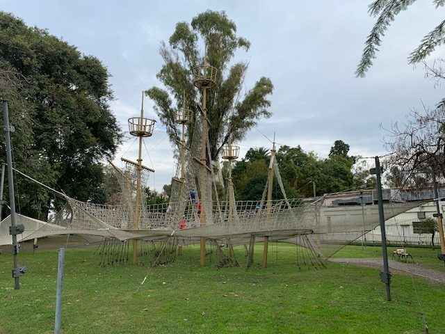 Mediodía. Pueden aprovechar para ir a comer pescado. Nosotros optamos por una opción más rápida: Pic nic de almuerzo en el Jardín de los Niños. Hay bancos y espacio verde para almorzar. Recorrimos la “Montañita Encantada” (un recorrido por una montaña con diversos senderos arbolados que es increíble porque apela a los sentidos, a lo que uno sueña y siente), “La máquina de trepar” (redes con forma de barco para trepar y saltar, se accede por turnos a partir de los 3 años) y el Edificio semi-enterrado, descubriendo los dispositivos lúdicos inspirados en obras de arte (increíble el espacio por lo amplio y la variedad y calidad de los juegos). Nos faltó “La Máquina de Volar” que la vimos desde afuera y es espectacular. Horario: vier, sab, dom y feriado de 13 a 18hs. Leopoldo Lugones 2290 (detrás del lago del parque independencia). Entrada $30 a partir de los 4 años. Las atracciones que les nombramos dentro son luego gratuitas. Es al aire libre, evitar con lluvia.